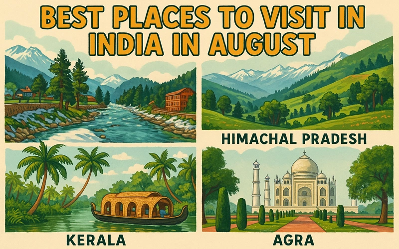 There are many best places to visit in India in August where you can enjoy lush valleys, vibrant festivals, romantic lakes, and adventure-filled treks. From Kerala’s backwaters to the Valley of Flowers in Uttarakhand, the country becomes a wonderland.